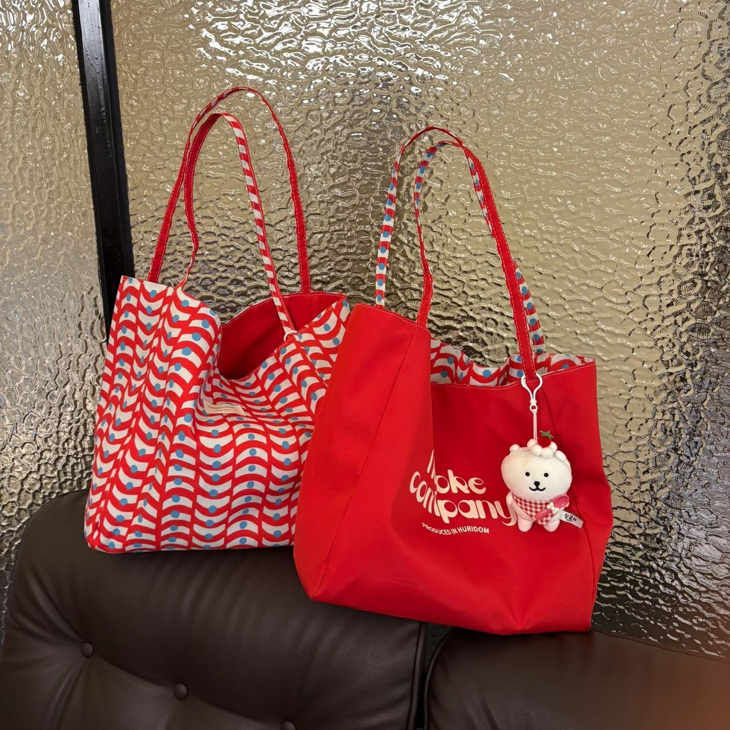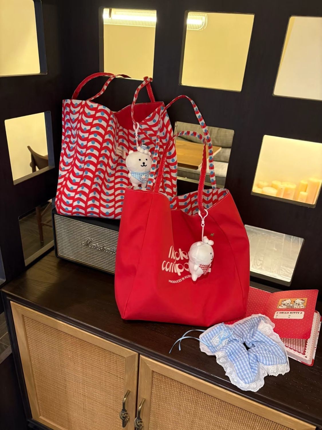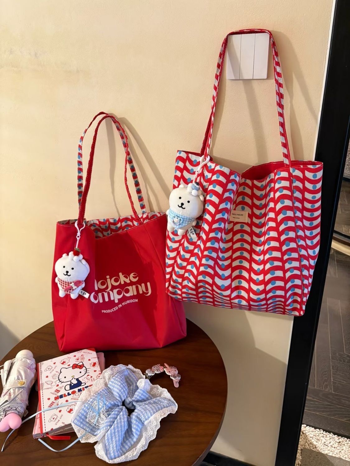 一包兩背的韓系時尚!紅色格紋大容量托特包,通勤上課都超有型